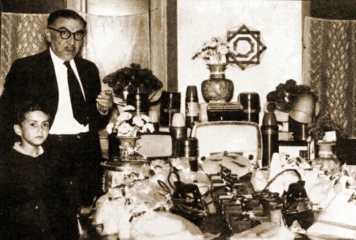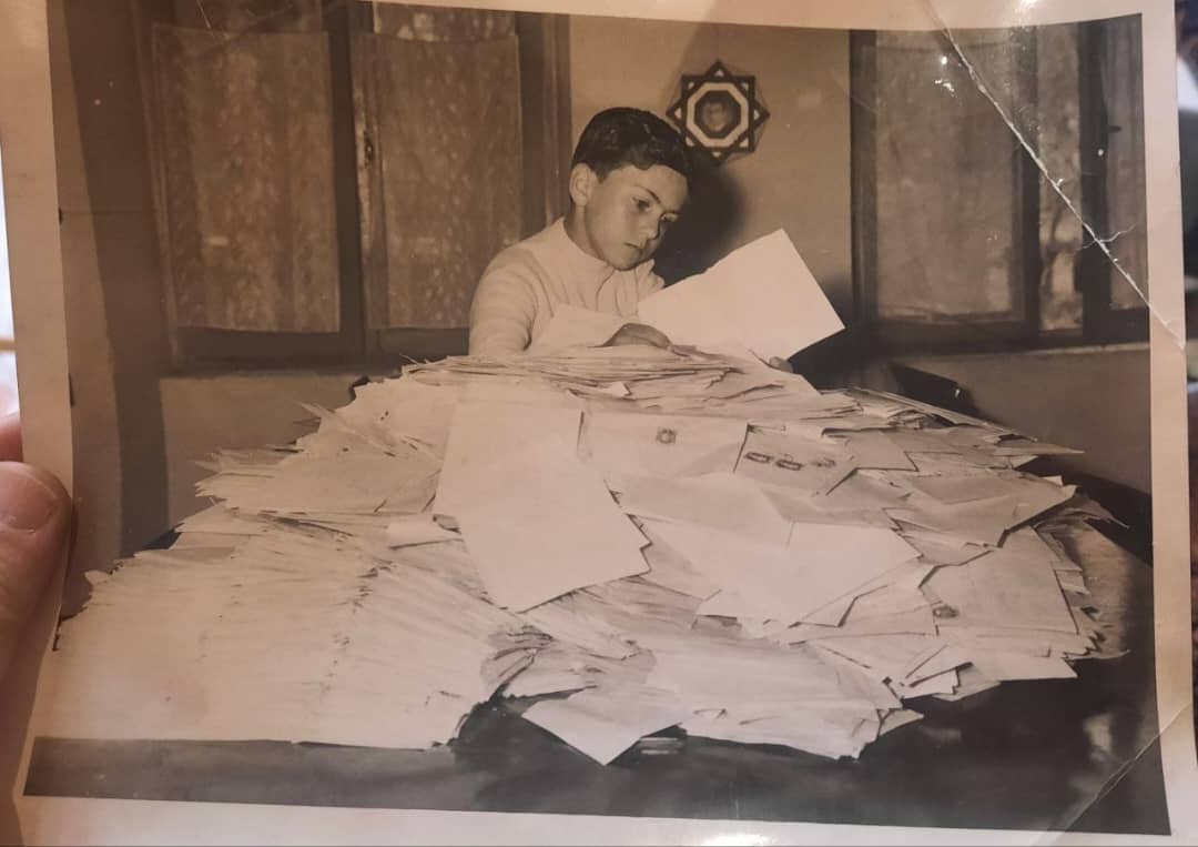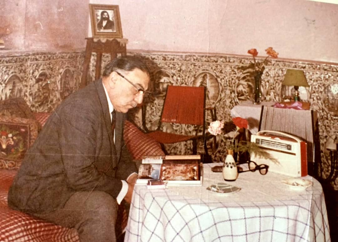 آقا بیژن در حال خواندن نامه های رسیده به برنامه کودک ۱۳۳۴(عکس از آرشیو هومن ظریف)