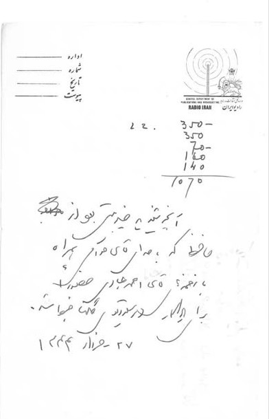 دستخط داوود پیرنیا- گفتار متن برنامه گلها(عکس از هومن ظریف)